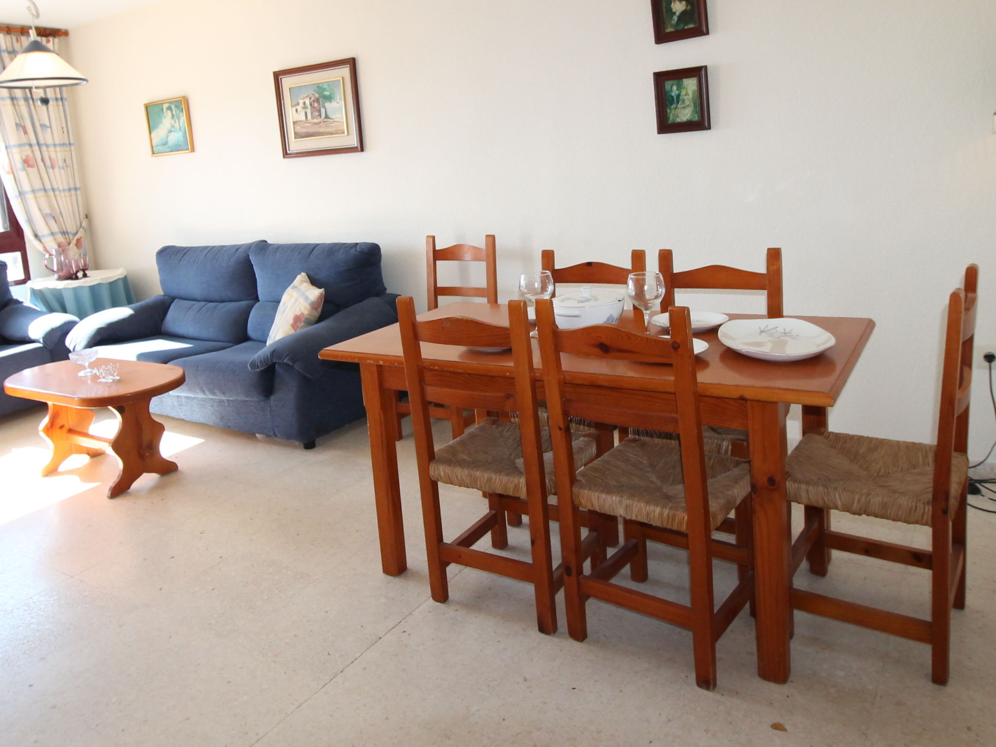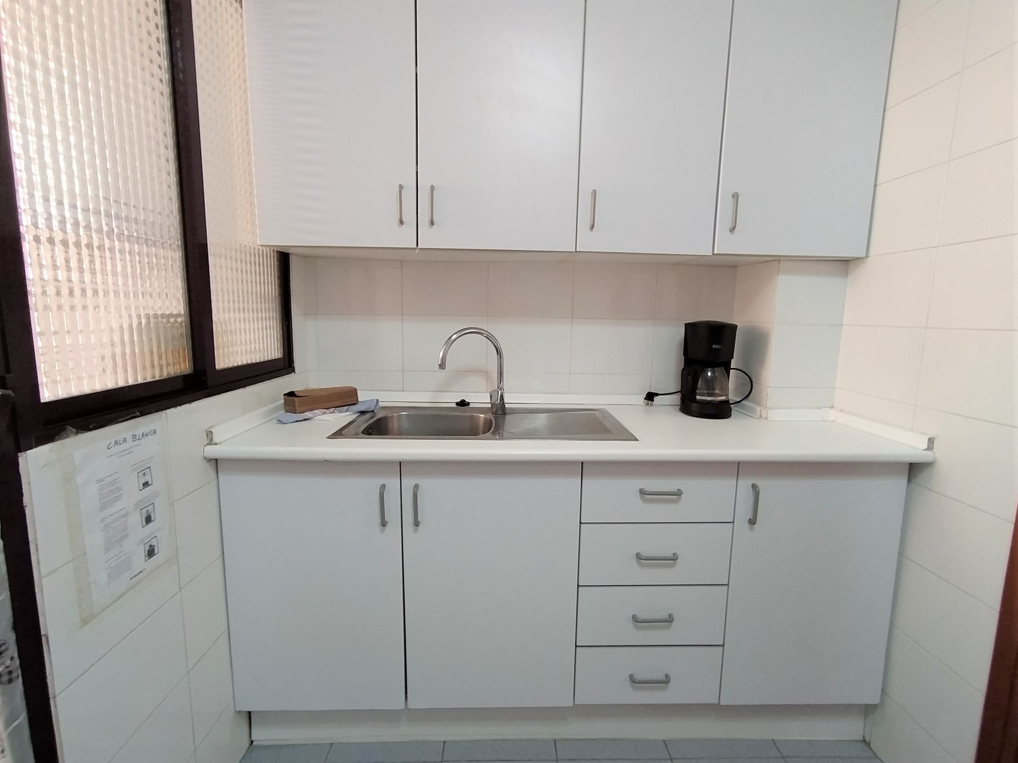 «Cala Blanca», apartamento de 3 habitaciones 78 m2 en el 6° piso. Luminoso, con mobiliario sencillo y funcional: salón-comedor 20 m2 con TV digital, calefacción eléctrica y ventilador. Salida al balcón cubierto. 1 dorm. 6 m2 con 1 cama de matrimonio (135 cm, 190 cm de longitud), ventilador. 1 dorm. 11 m2 con 2 camas (90 cm, 150 cm de longitud), ventilador. Pequeña cocina (4 fogones, tostadora, hervidor de agua eléctrico, microondas, congelador, cafetera eléctrica). Baño/bidet/WC. Terraza 9 m2. Muebles de terraza. Vista bonita al mar, a las montañas y a la localidad. El alojamiento dispone de: lavadora, plancha, secador de pelo. 1 mascota / perro. AT-421317-A