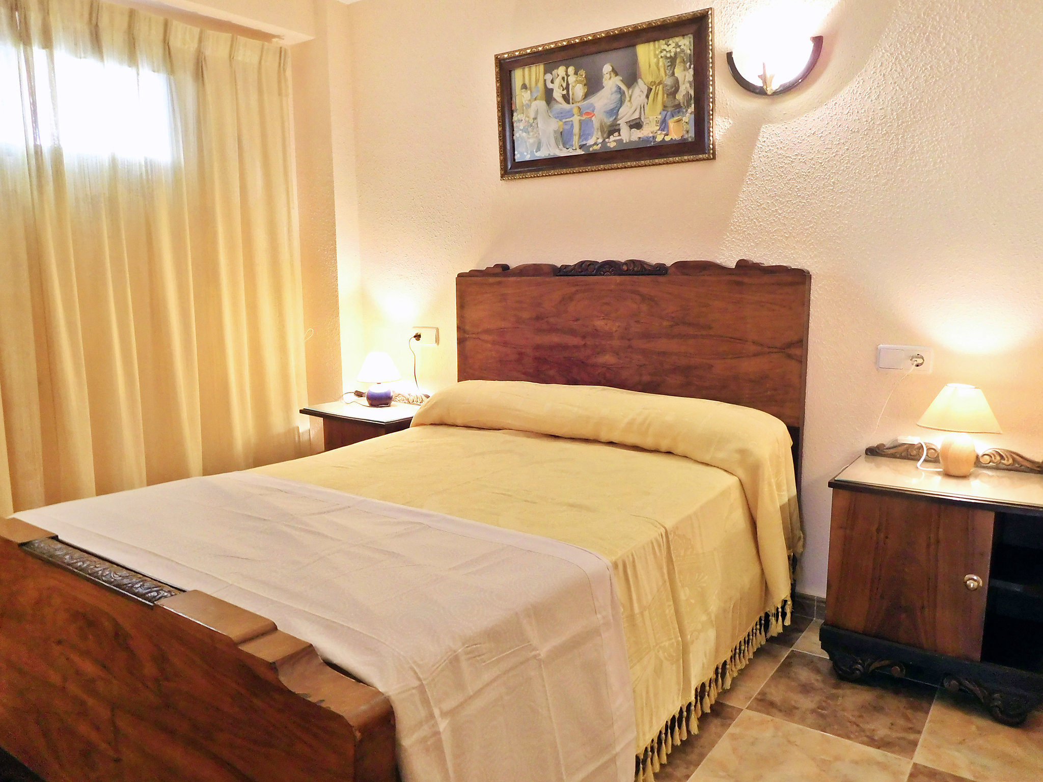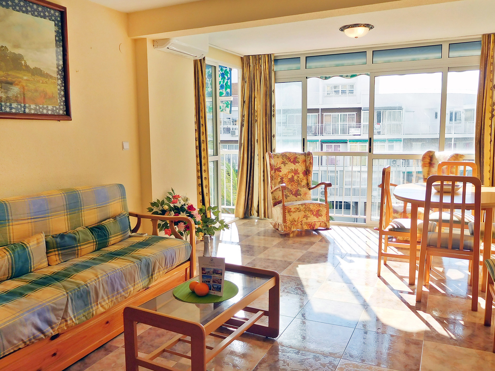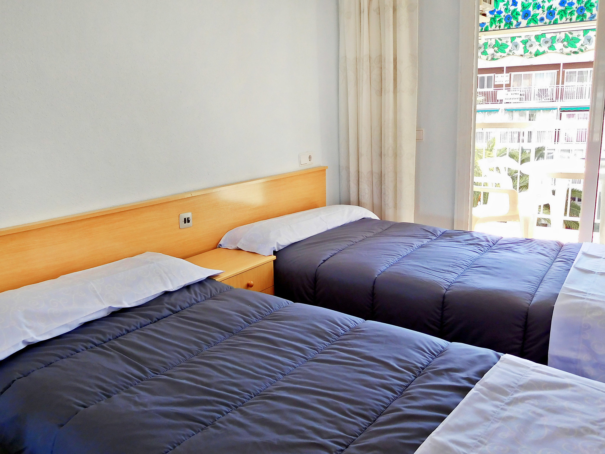 «Halcon Levante», apartamento de 3 habitaciones 40 m2 en el 2° piso. Espacioso y luminoso, con mobiliario sencillo y funcional: salón-comedor 23 m2 con TV digital, aire acondicionado y bomba de calor, caliente. Salida a la terraza. 1 dorm. 9 m2 con 2 camas (90 cm, 190 cm de longitud). 1 dorm. 9 m2 con 1 cama de matrimonio (135 cm, 180 cm de longitud). Cocina (4 fogones, horno, tostadora, hervidor de agua eléctrico, microondas, congelador, cafetera eléctrica). Ducha/WC. Terraza pequeña 6 m2. Muebles de terraza. Vista parcial al mar, a la piscina y a la localidad. El alojamiento dispone de: lavadora, plancha, secador de pelo. Plaza de aparcamiento n. S/N. A tener en cuenta: 1 mascota pequeña / perro. TV solamente ES. AT-321937-BM