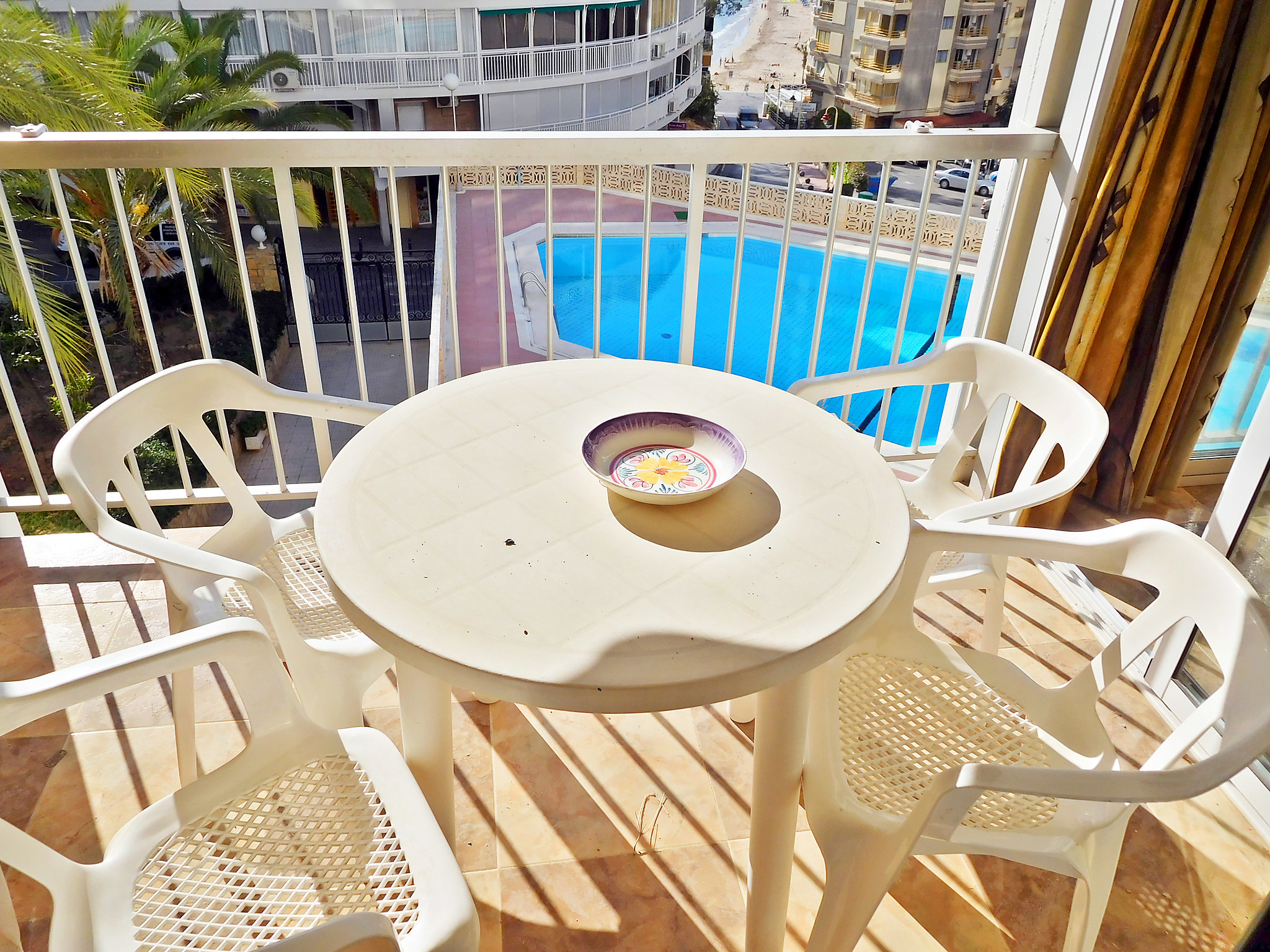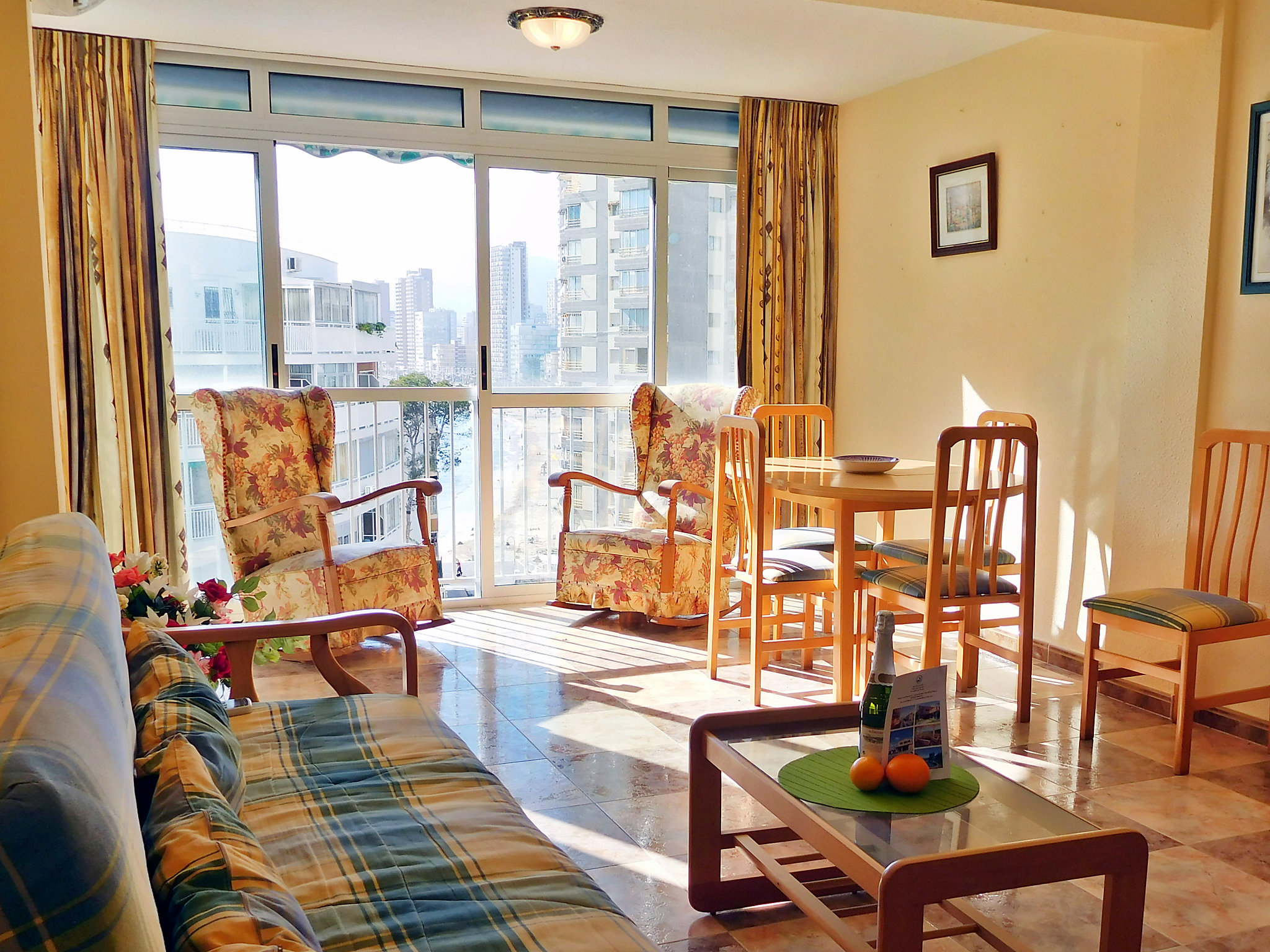 Importante, famosa, animada ciudad, en el este de la región, a orillas del mar, lugar bien comunicado con bonitas vistas, 45 km al noreste de Alicante, 130 km al sureste de Valencia. En la localidad: centro comercial, supermercado, tiendas, correos, banco, restaurante, bar, discoteca, club nocturno, casino, conciertos, animación nocturna, cine, sitios de interés. Senderismo, piscina cubierta, piscina con agua termal, gimnasio, sauna, aplicaciones curativas, masajes, thalassoterapia. Además: farmacia, centro médico. Más posibilidades de hacer compras y ocio. Atracciones turísticas Aqualandia, Terra Mitica, Benidorm Palace, Zoo Terra Natura, Mundomar, Club infantil Circus Benidorm, Parque de atracciones. Conexiones: autopista AP7, salida 65.