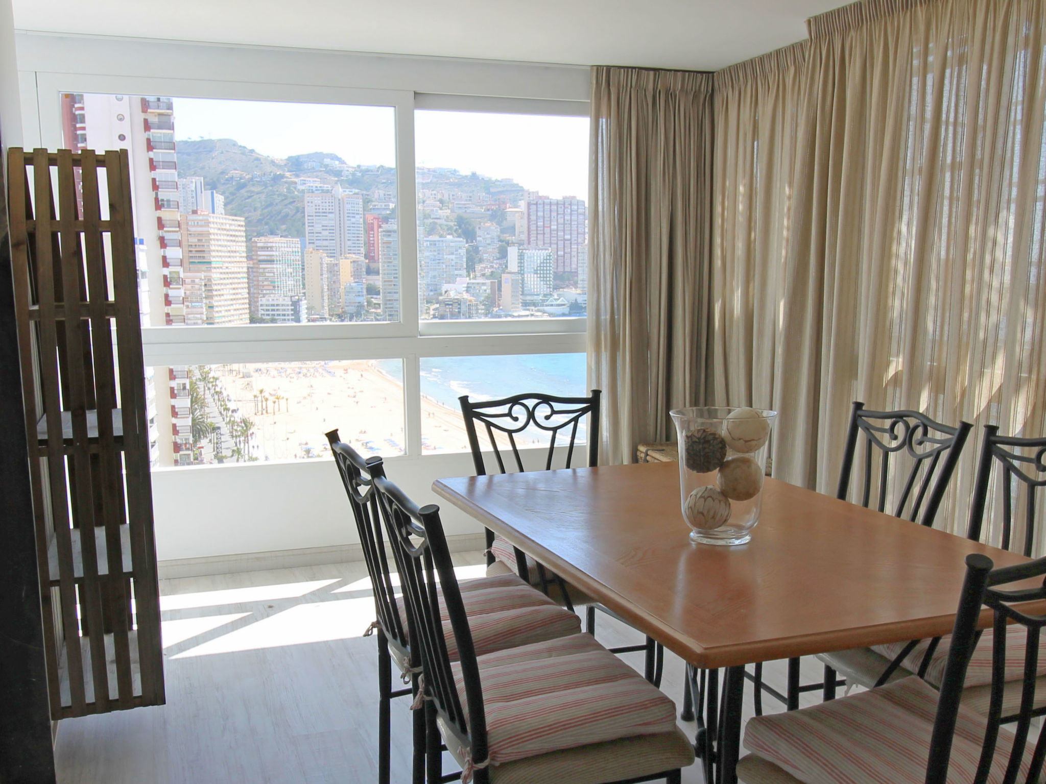Importante, famosa, animada ciudad, en el este de la región, a orillas del mar, lugar bien comunicado con bonitas vistas, 45 km al noreste de Alicante, 130 km al sureste de Valencia. En la localidad: centro comercial, supermercado, tiendas, correos, banco, restaurante, bar, discoteca, club nocturno, casino, conciertos, animación nocturna, cine, sitios de interés. Senderismo, piscina cubierta, piscina con agua termal, gimnasio, sauna, aplicaciones curativas, masajes, thalassoterapia. Además: farmacia, centro médico. Más posibilidades de hacer compras y ocio. Atracciones turísticas Aqualandia, Terra Mitica, Benidorm Palace, Zoo Terra Natura, Mundomar, Club infantil Circus Benidorm, Parque de atracciones. Conexiones: autopista AP7, salida 65.