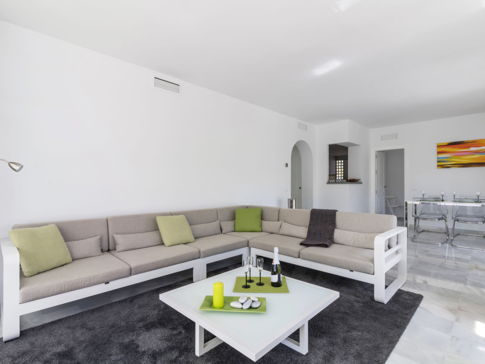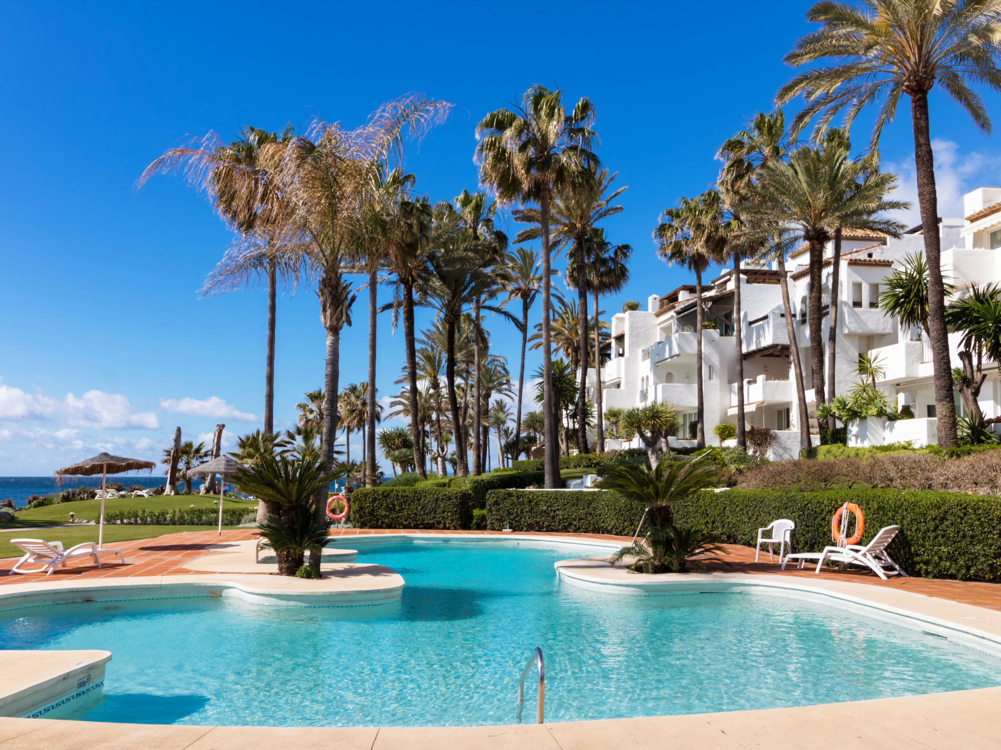 Casa de apartamentos «Alcazaba Beach», muy moderno, bonito. En el distrito Estepona, lugar tranquilo, soleado, a 50 m del mar, a 50 m de la playa, acceso directo a la playa, orientación sur. Comunitario: jardín en diferentes niveles, piscina (Disponible por temporada: 01.Jun. – 31.Sep.). Piscina para niños, ducha exterior, terraza, muebles de jardín. En el complejo: acceso a internet, Wifi, calefacción central, aire acondicionado, lavadora. Aparcamiento junto a la casa. Tienda 1 km, supermercado 1 km, centro comercial 10 km, restaurante 1 km, bar 1 km, panadería 1 km, zona peatonal 100 m. Campo de golf (18 hoyos) 4 km. A tener en cuenta: no adecuado para niños más pequeños de 4 años. Vivienda adecuada para 4 adultos. El propietario no acepta grupos. El propietario no acepta grupos de adolescentes/jóvenes. Aeropuerto 65 km de la casa. Se pueden usar cualquiera de las 7 piscinas de la urbanización. No grupos de jóvenes permitidos. Ideal para familias.
